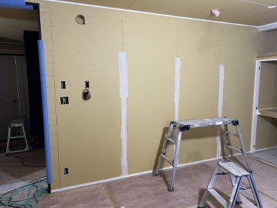 完成してからは見ることができない壁内部の断熱がご覧頂けます。