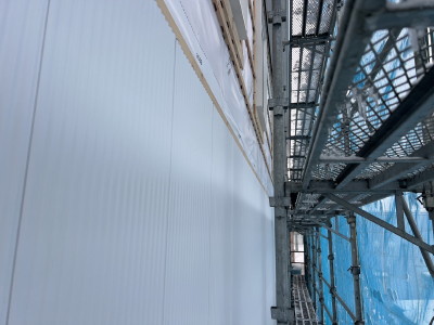 外壁貼り工事の様子